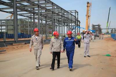 許緘濤檢查了項(xiàng)目現(xiàn)場(chǎng),聽(tīng)取了項(xiàng)目關(guān)于安全、質(zhì)量、進(jìn)度等方面工作情況匯報(bào)。他指出,榆神能化項(xiàng)目是延長(zhǎng)石油集團(tuán)及我公司的重點(diǎn)工程,建設(shè)情況受到廣泛關(guān)注。公司對(duì)項(xiàng)目建設(shè)情況高度重視,項(xiàng)目全員要提高認(rèn)識(shí),形成共識(shí),按照施工計(jì)劃高標(biāo)準(zhǔn)完成任務(wù);緊盯“10?30鍋爐具備點(diǎn)火條件”節(jié)點(diǎn)目標(biāo),強(qiáng)化時(shí)間觀念和效率意識(shí),搶進(jìn)度、抓質(zhì)量、保安全,確保項(xiàng)目建設(shè)重大節(jié)點(diǎn)順利實(shí)現(xiàn)。同時(shí),他對(duì)不畏酷暑、奮戰(zhàn)在一線的員工表示慰問(wèn),并叮囑大家要?jiǎng)谝萁Y(jié)合,合理安排作息時(shí)間,安全生產(chǎn),平安度夏。