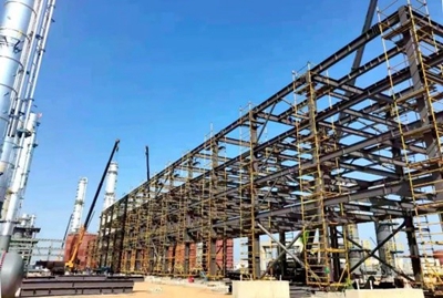 甲醇聯(lián)合裝置鋼結(jié)構(gòu)約7100噸。目前,甲醇裝置管廊、精餾框架、變換框架、凈化壓縮機(jī)廠房鋼結(jié)構(gòu)已全面開始安裝,累計完成安裝2600余噸。(通訊員/衣成波 攝/衣成波)