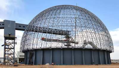 圓形煤場為全封閉半球形結(jié)構(gòu),建筑面積約5800平米,可堆放燃煤4萬噸燃煤,滿足全廠儲煤要求,是全廠最大的鋼網(wǎng)結(jié)構(gòu)建筑。