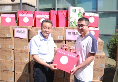 公司黨委副書記、工會主席景建民為職工送上牛奶、月餅、扶貧產(chǎn)品等慰問物資,感謝每位員工一直以來的辛勤付出。