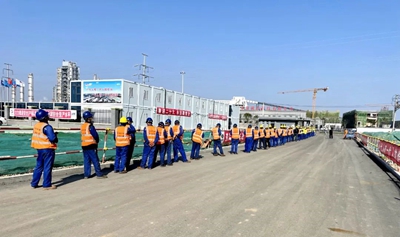 為確保設(shè)備、機械、材料按計劃投入,項目部積極與當?shù)卣、防疫部門、建設(shè)單位、設(shè)備廠家等單位溝通協(xié)調(diào),了解防疫政策,避免因疫情影響導(dǎo)致運輸受阻。同時,為確保超限設(shè)備項目現(xiàn)場制作按計劃推進,項目部將辦公室、會議室全部作為工人宿舍,配備必要的生活、防疫物資,為封控作業(yè)的90余名工人提供健康、安全的現(xiàn)場食宿條件,確保設(shè)備制造不停歇。